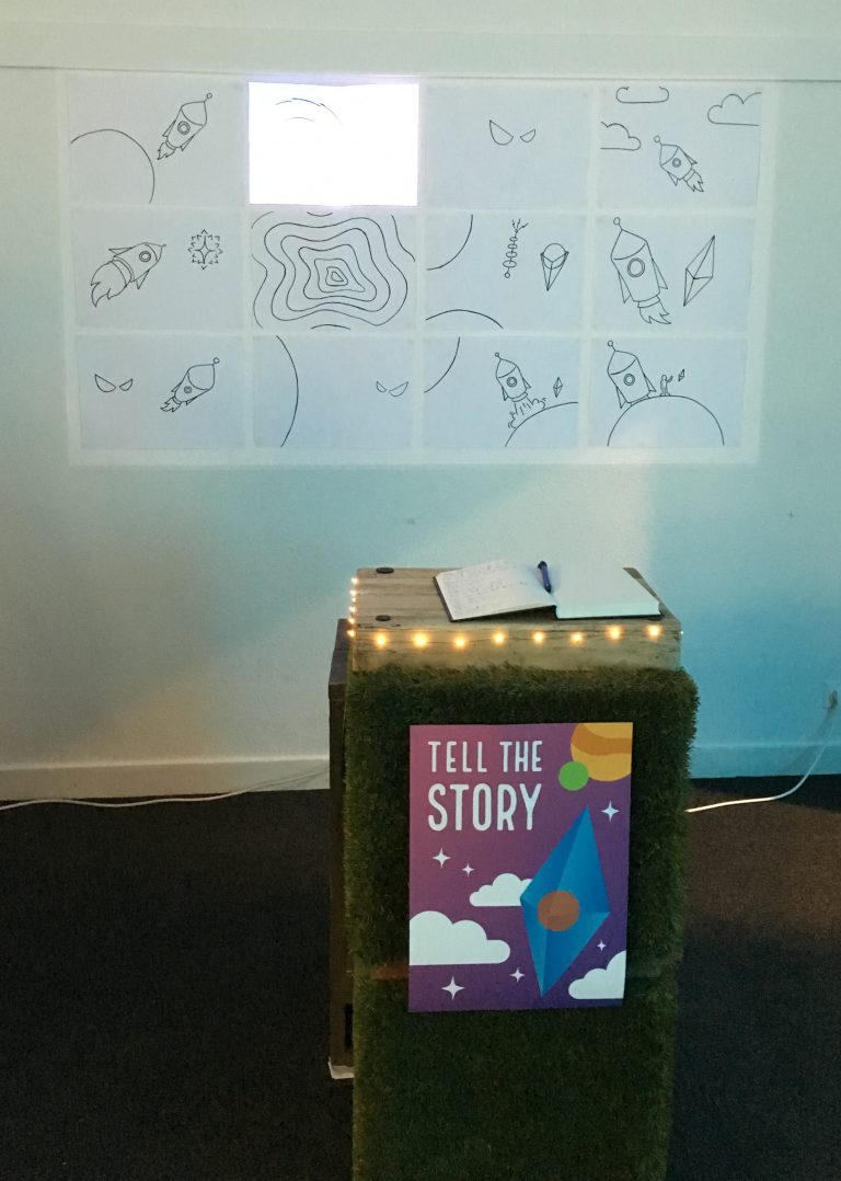 Dit was een project waarbij het doel was om mensen zelf een stukje verhaal te schrijven n.a.v. wat er te zien was en te laten zien hoe elk individueel persoon een eigen interpretatie heeft.