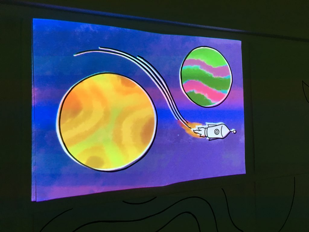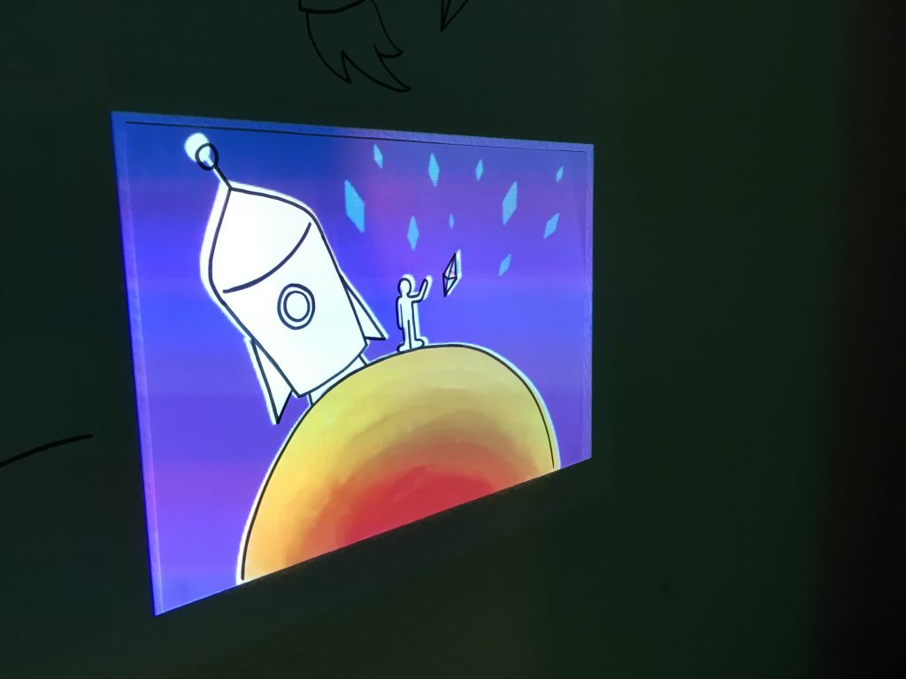 Hiervoor heb ik zelf een kort verhaaltje geschreven en de daar bijbehorende afbeeldingen gemaakt. Deze afbeeldingen zijn ook geanimeerd om zo de tekeningen tot leven te laten komen. Het enige wat ik de bezoekers zou geven waren deze afbeeldingen.